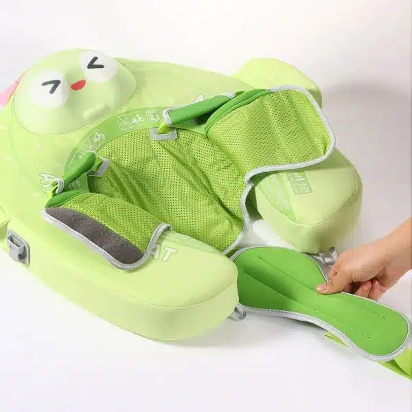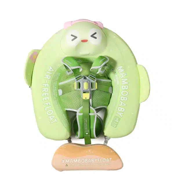 It features a vest-style design with adjustable straps, allowing the baby to float safely on their chest or back while being securely supported.