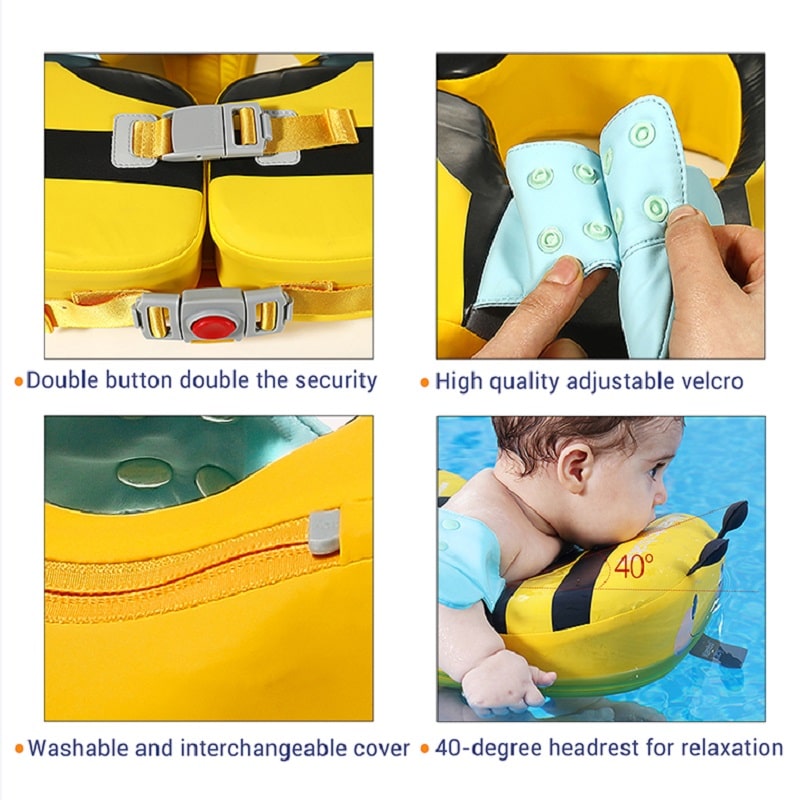 • Keeps baby in a vertical swimming position